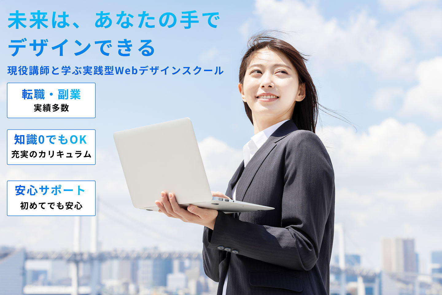 未経験でも安心して学べる環境の中で、転職・副業・フリーランスなど、あなたらしい働き方へと導きます。